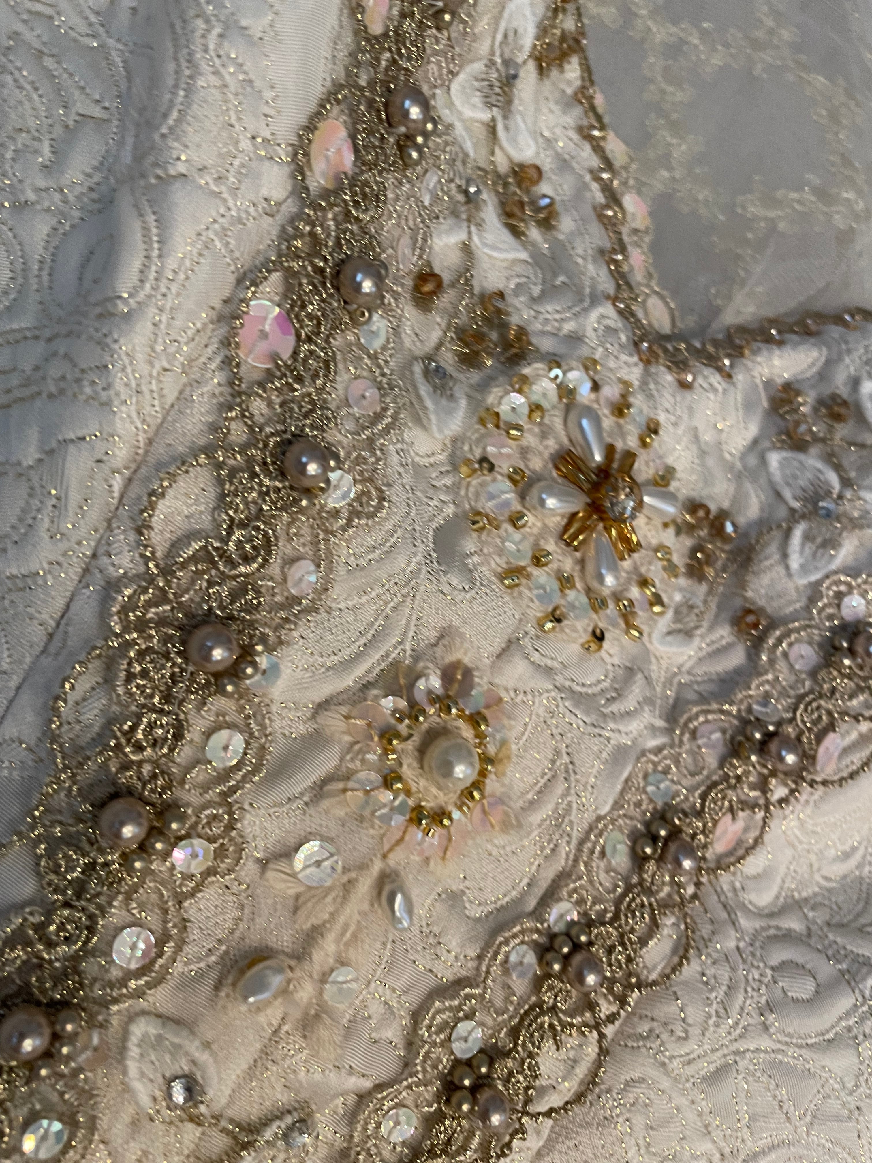 胸元からスカートへと続く細やかな装飾は、主役らしい存在感を演出。