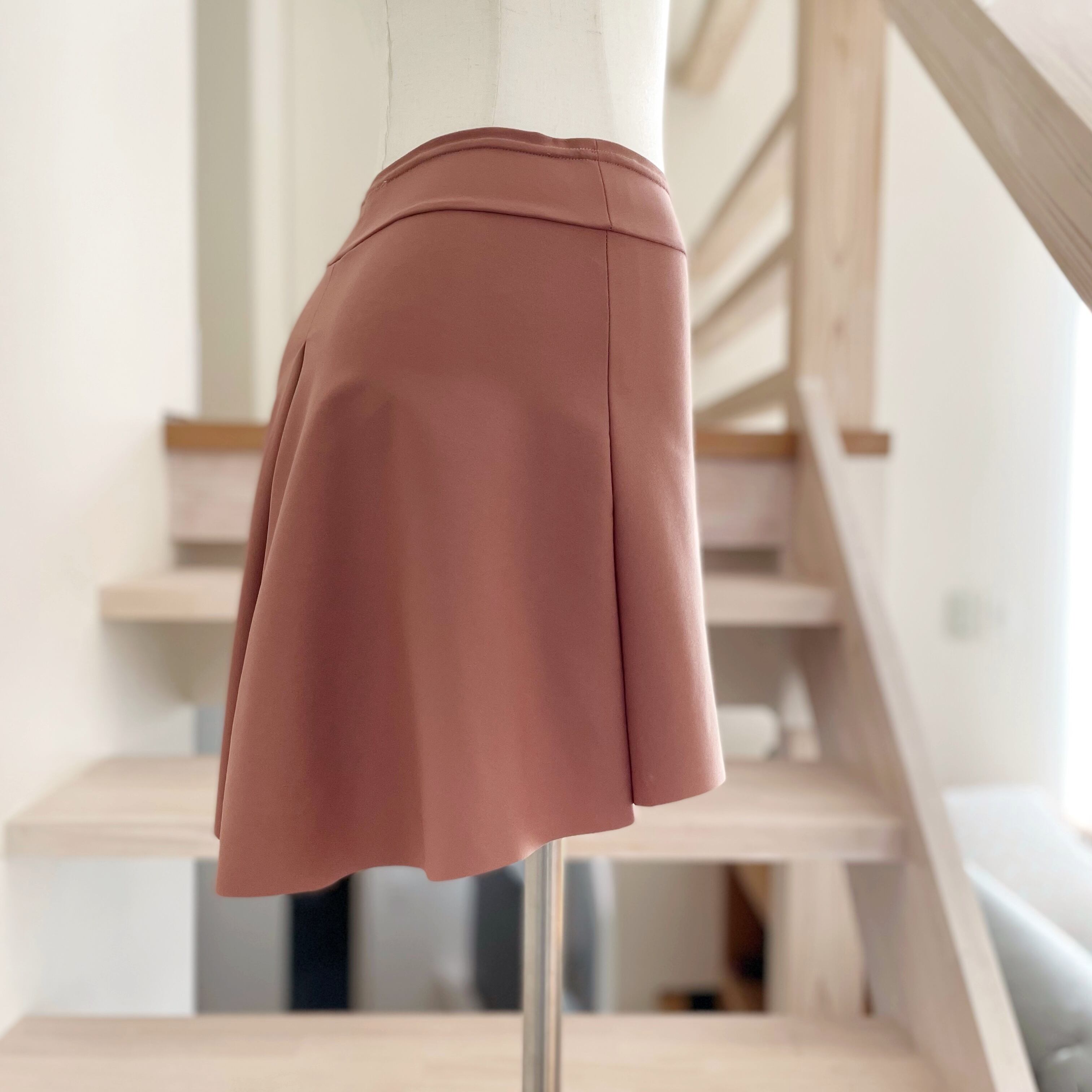 ストレッチ性を生かしたスタイリッシュな形のプルオンスカート。