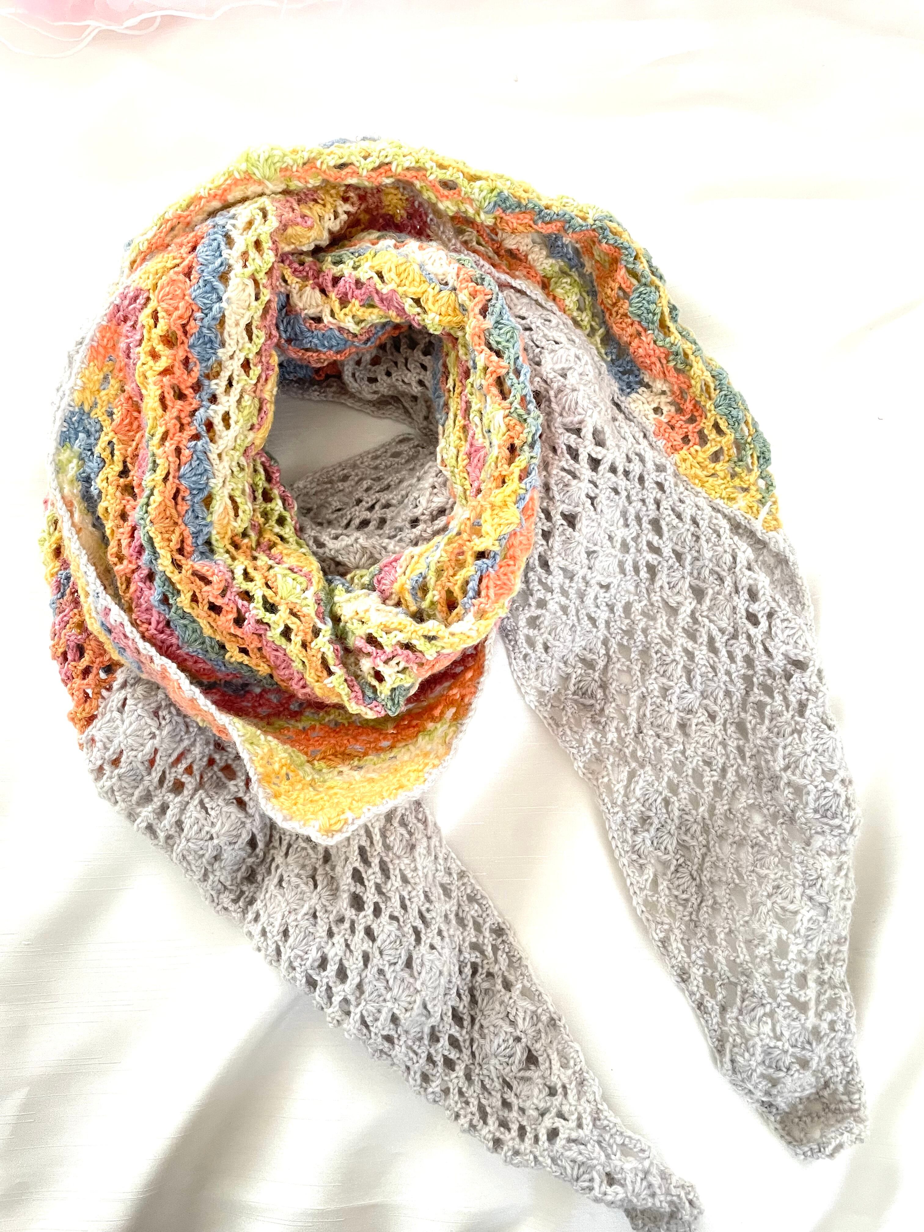 模様編みの透かし編みなので、空気を、多く含んでとてもあたたかく、かさばりもせずサッと巻けるので、荷物多くて忙しい方にもオススメです。